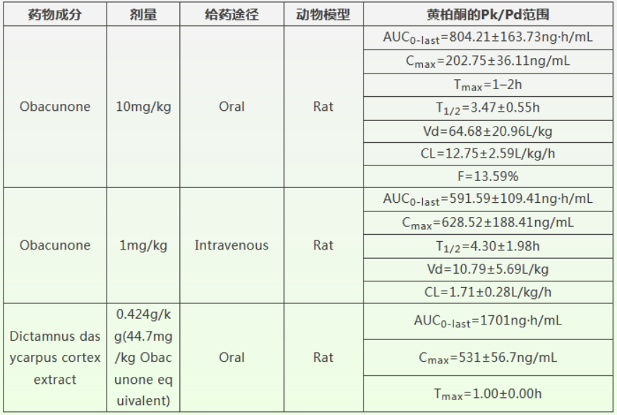 檸檬苦素類(lèi)化合物黃柏酮:藥理活性作用與藥代動(dòng)力學(xué)特征