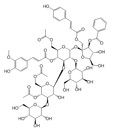 遠(yuǎn)志寡糖酯類成分主要以蔗糖為共同母核,以多種類型的糖苷鍵與鼠李素或葡萄糖連接構(gòu)成寡糖,最后與有機(jī)酸 ( 乙酸、苯甲酸類和苯丙烯酸類 ) 形成糖酯類。研究發(fā)現(xiàn),三糖以上的糖酯僅在遠(yuǎn)志屬植物中被發(fā)現(xiàn),因此寡糖酯類成分是遠(yuǎn)志屬植物特有成分。