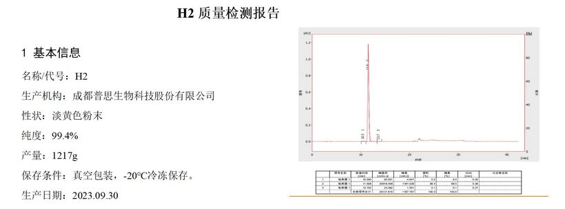 某護(hù)膚品企業(yè)需從某珍稀植物中提取含量僅0.01%的抗氧化黃酮成分。普思生物利用半制備系統(tǒng)開發(fā)專屬方法,實(shí)現(xiàn)微量成分的高效富集,最終獲得100mg超高純度(99.4%)單體,助力客戶產(chǎn)品功效升級(jí)。原料及單體HPLC圖譜: