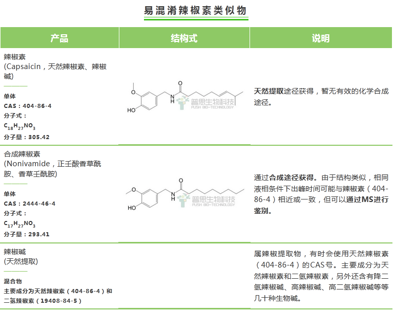 辣椒素(Capsaicin)是一種無色無味的生物堿類化合物。其作為辣椒中的主要活性成分,是TRPV1受體激動(dòng)劑,具有減輕疼痛、抗氧化、抗炎、神經(jīng)保護(hù)和抗癌作用,近年來在醫(yī)藥食品、化妝品等領(lǐng)域的研究中受到了廣泛關(guān)注。本文將深入介紹辣椒素的基本信息、理化性質(zhì)、藥理活性作用,及其在醫(yī)藥、食品等領(lǐng)域的應(yīng)用。(ps.文末有易混淆辣椒素類似物區(qū)分要點(diǎn)哦?。?/span>