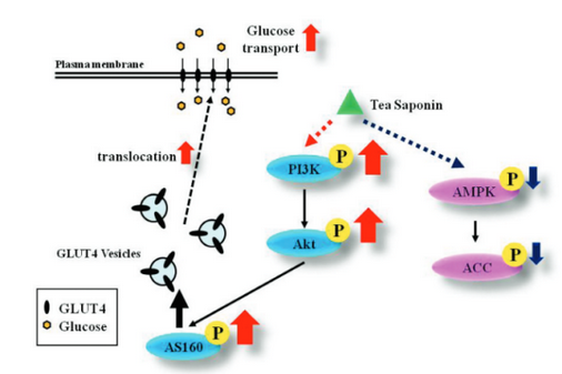 2、抗糖尿病作用:茶皂素E1通過激活PI3K/Akt/mTOR信號(hào)通路,增加C2C12成肌細(xì)胞的葡萄糖攝取能力,改善肌肉能量代謝,降低血糖水平,對(duì)于Ⅱ型糖尿病具有潛在的治療作用。