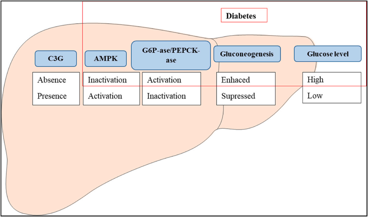 C3G通過(guò)激活A(yù)MPK途徑抑制肝臟糖異生,并能誘導(dǎo)氧化應(yīng)激下的癌細(xì)胞衰老和凋亡。