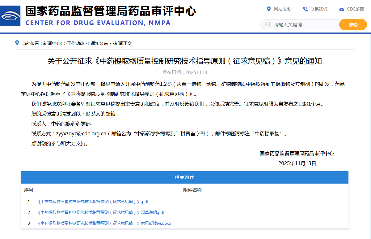 新指導(dǎo)原則征求意見|CDE最新發(fā)布《中藥提取物質(zhì)量控制研究技術(shù)指導(dǎo)原則(征求意見稿)》